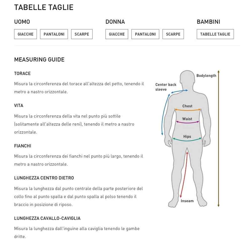 | Torace cm. | 86-90 | 90-94 | 94-100 | 100-102 | 102-108 |