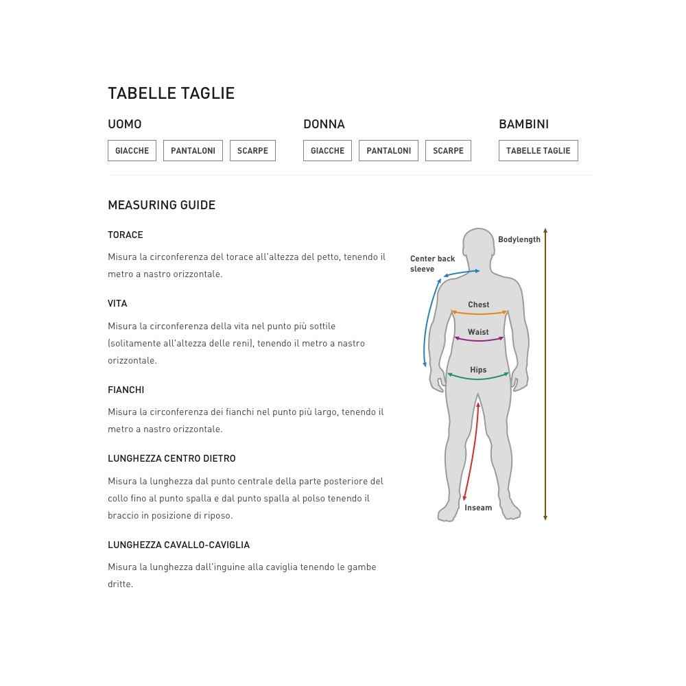 | Altezza cm. | 160-164 | 164-166 | 166-168 | 168-172 | 172-174 |