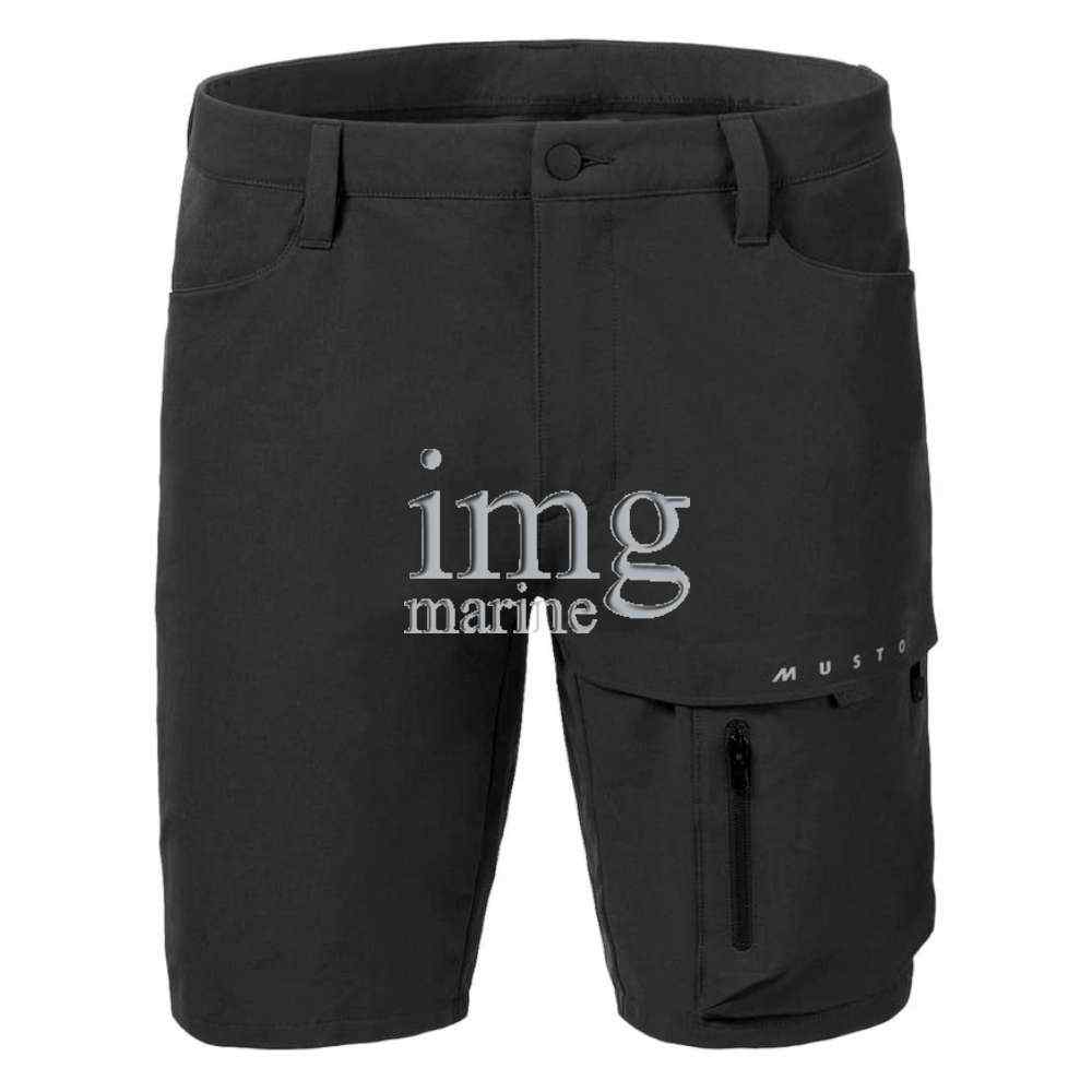 Pantaloncini Musto Evo Deck da uomo: tessuto elasticizzato a rapida asciugatura, protezione UV UPF 40, quattro tasche con chiusura in Velcro, passanti per attrezzi. Colore Nero