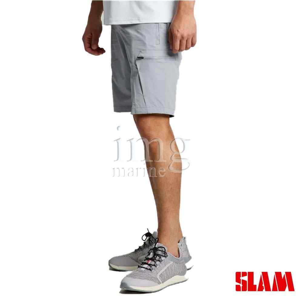 Short tecnico Slam Tech Cargo: realizzato in nylon stretch leggero, idrorepellente, ad asciugatura rapida, con ampie tasche cargo e seduta rinforzata. Colore Aluminium