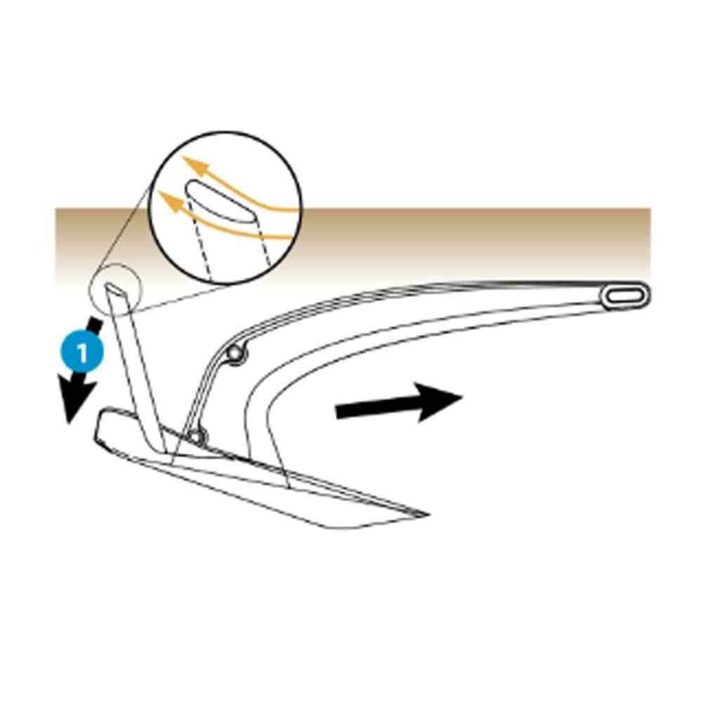 Il sistema Roll-Foil, permette all’ancora di autoraddrizzarsi nella posizione ideale, facilitando l’ancoraggio anche se calata capovolta.