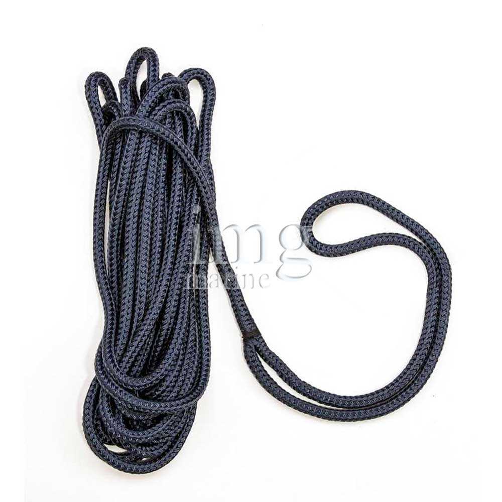 Cima da ormeggio con gassa a doppia treccia con impiombatura a occhio realizzata in Poliestere HT colore Blue Navy. Pronta per l'ormeggio. Misure da Ø 12 a Ø 20 mm. Lunghezze varie.