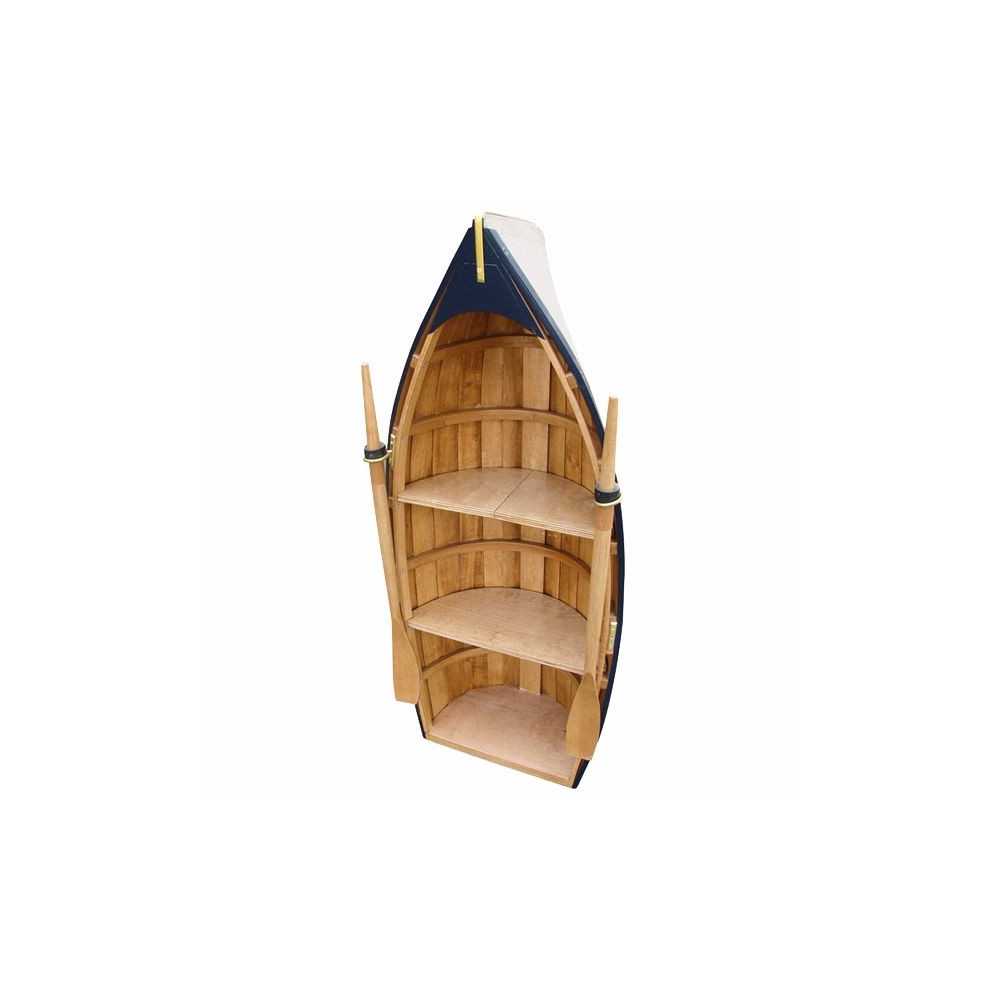 Scialuppa portaoggetti con remi, in legno con finiture blu, lavorata a mano. Disponibile in tre misure.