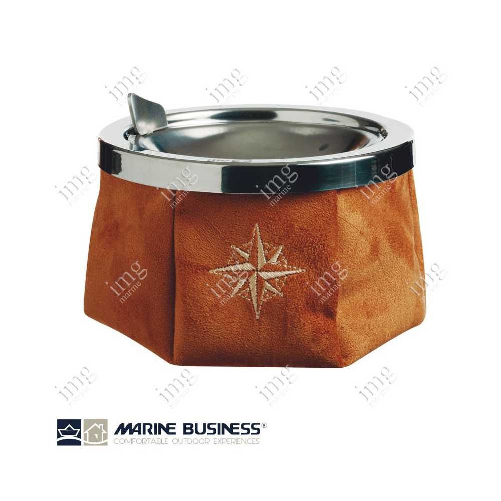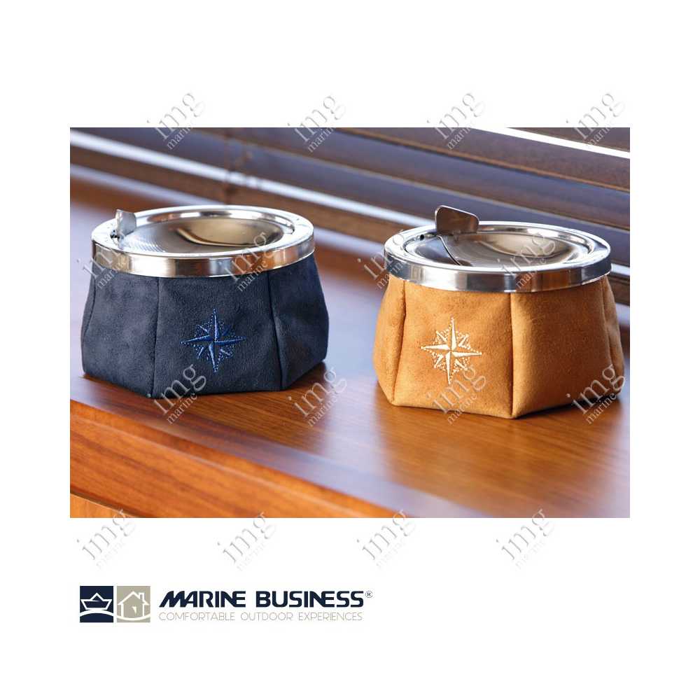 Portacenere posacenere antivento in acciaio inox e alcantara caramel, antiscivolo. Misure: ø 11,5 cm - H 9 cm. Ideale per l'uso in barca perchè non scivola e la cenere resta raccolta all'interno.