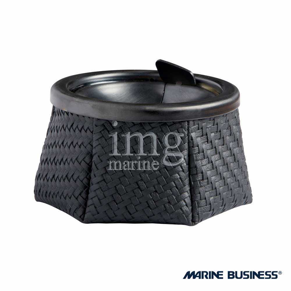 Posacenere portacenere antivento in acciaio inox e similpelle Rattan Black, antiscivolo. Misure: ø 11,5 cm - H 9 cm. Ideale per l'uso in barca perchè non scivola e la cenere resta raccolta all'interno del contenitore in acciaio inox.