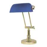 Lampada da tavolo in ottone e paralume in opaline blu.