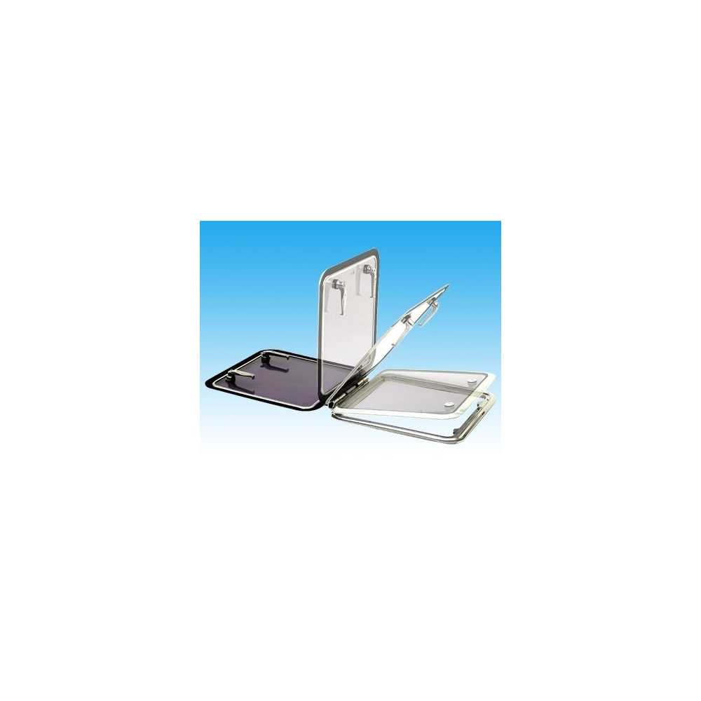 Passo uomo GEBO Flushline Categoria A in alluminio anodizzato con battuta e vetro in policarbonato da 8 /10 mm. Altezza in coperta solo di 24 mm. Modello approvato CE e ISO. Osteriggi disponibile in varie misure.