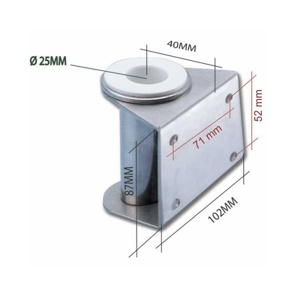 Realizzato in acciaio inox con bicchiere in materiale plastico, per il montaggio della passerella sullo specchio di poppa verticale 90°.