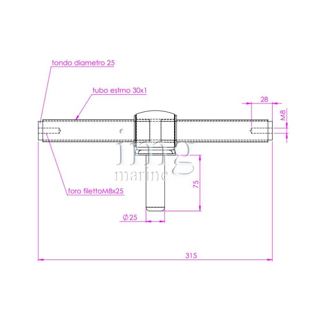Perno pivottante in alluminio per passerella con parte centrale pressofusa Lunghezza 330 mm