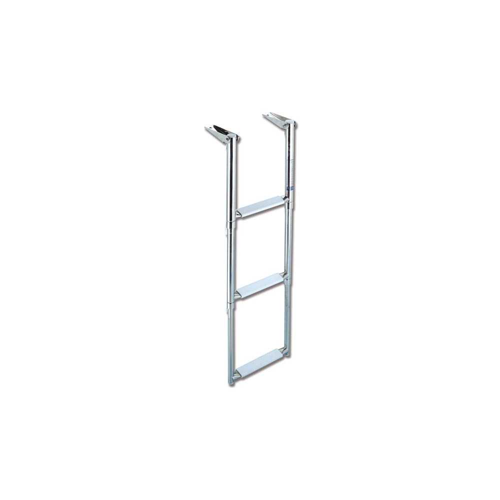 Scaletta telescopica ribaltabile in acciaio inox lucidato a specchio, ideale per applicazione su plancetta. Gradini ovali con profilo antiscivolo. Disponibile in 3 misure.