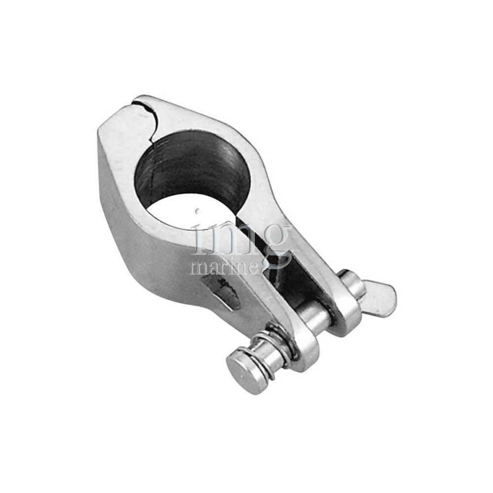 Giunto apribile a forcella con perno sfilabile e vite di sicurezza realizzato in acciaio inox 316 per tubolari Ø 22 - 25 - 30 mm.