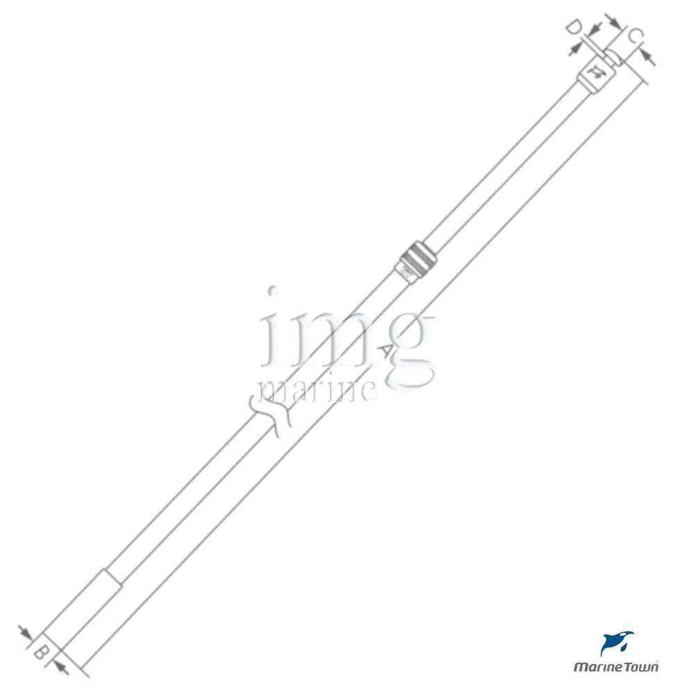 Palo telescopico Sunshade in fibra di vetro, carbonio e acciaio inox 316. Può essere utilizzato per modificare l’altezza del telo ombreggiante in base all’angolo del sole. Altezza 1024-1845 m.