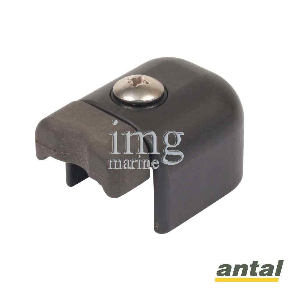 Terminale semplice in alluminio anodizzato nero per rotaia 31x21. Completo di protezione in gomma.