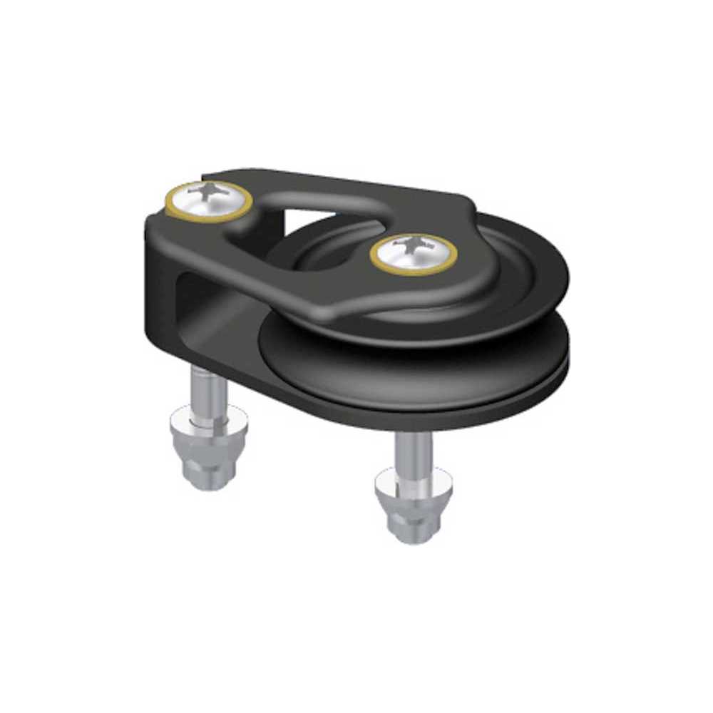 Bozzello singolo di rinvio molto robusto senza perni e viti con telaio in Alluminio Ossidato nero e teflonato in un unico pezzo. Con pulegge in resina su doppio cuscinetto a sfere che non necessita di lubrificazione. L'uso dei migliori materiali garantisce leggerezza e carichi di lavoro elevati.