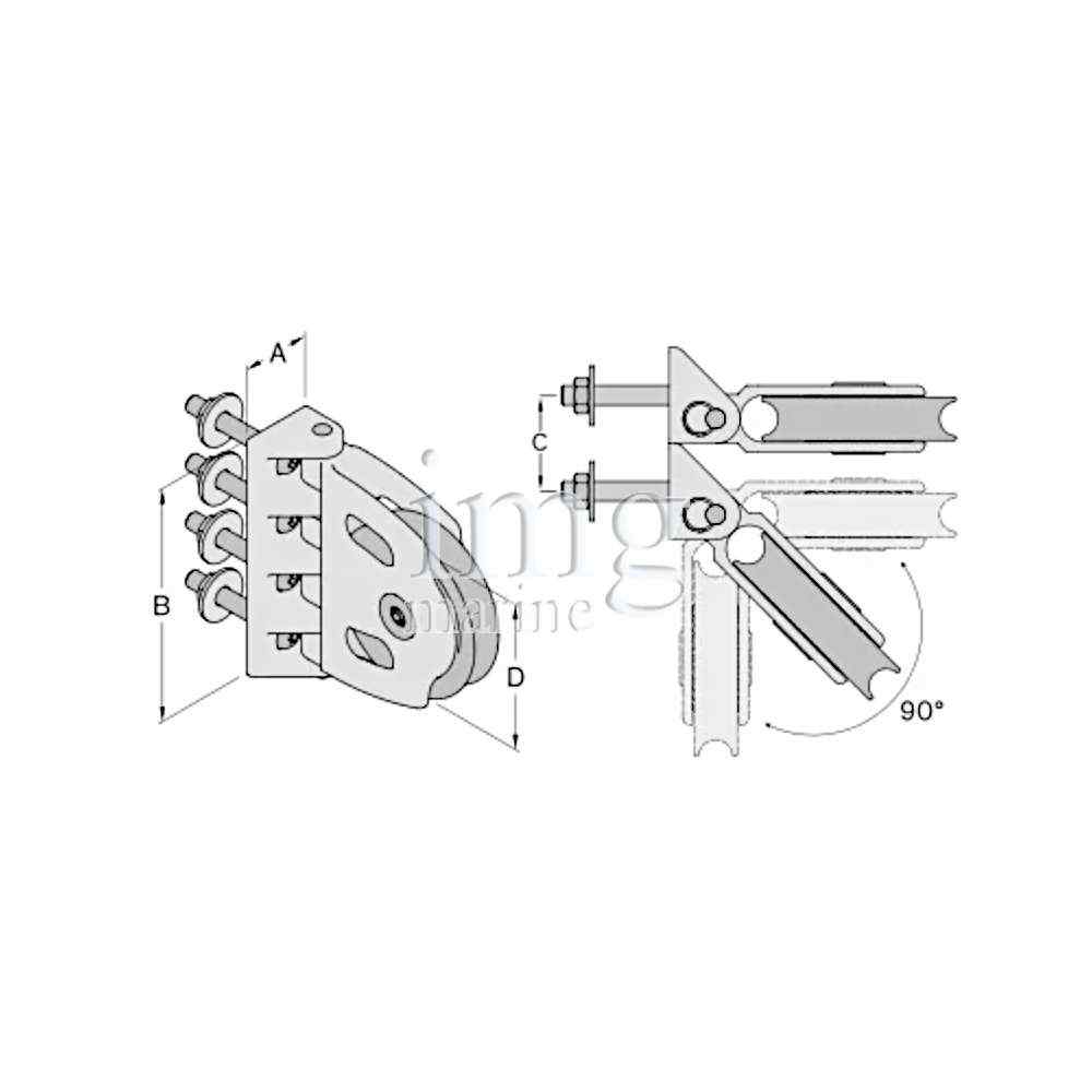 Rinvio singolo speciale, progettato per indirizzare la manovra dalla base dell'albero al winch. Disponibile in 3 differenti misure, per cima dal Ø12 mm al Ø16 mm.