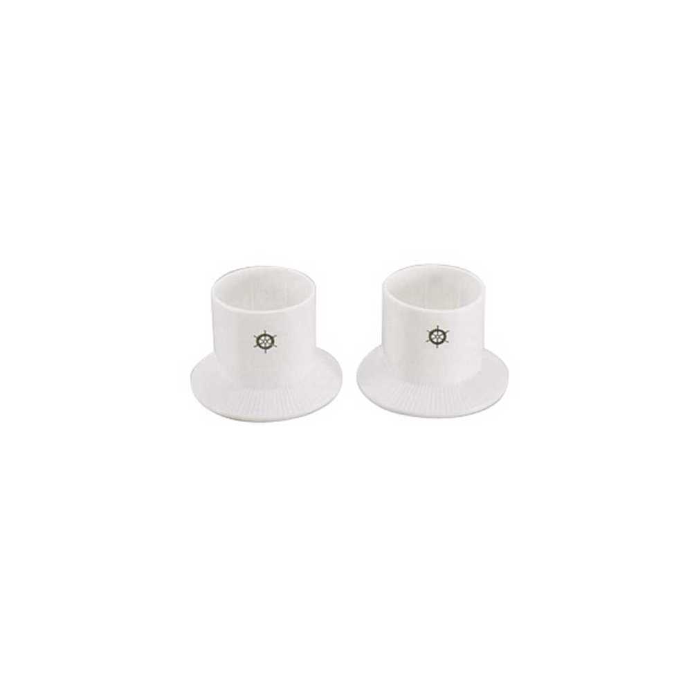 Coppia porta bicchieri o lattine a ventosa antirovesciamento, realizzate in PVC bianco Ø interno 65 mm.