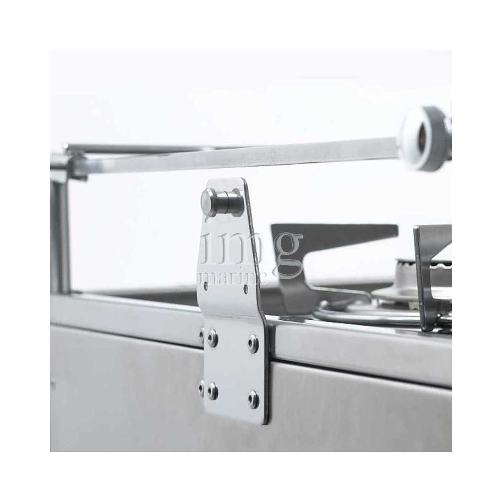 Costruita interamente in acciaio inox con forno interno, griglia e ferma pentole regolabile, supporto laterale cardanico