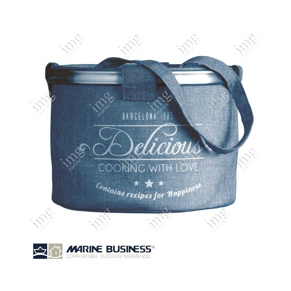 Cesta rotonda multiuso Blue serie Bora Bora di Marine Business, realizzata in tessuto di polyestere e alluminio.