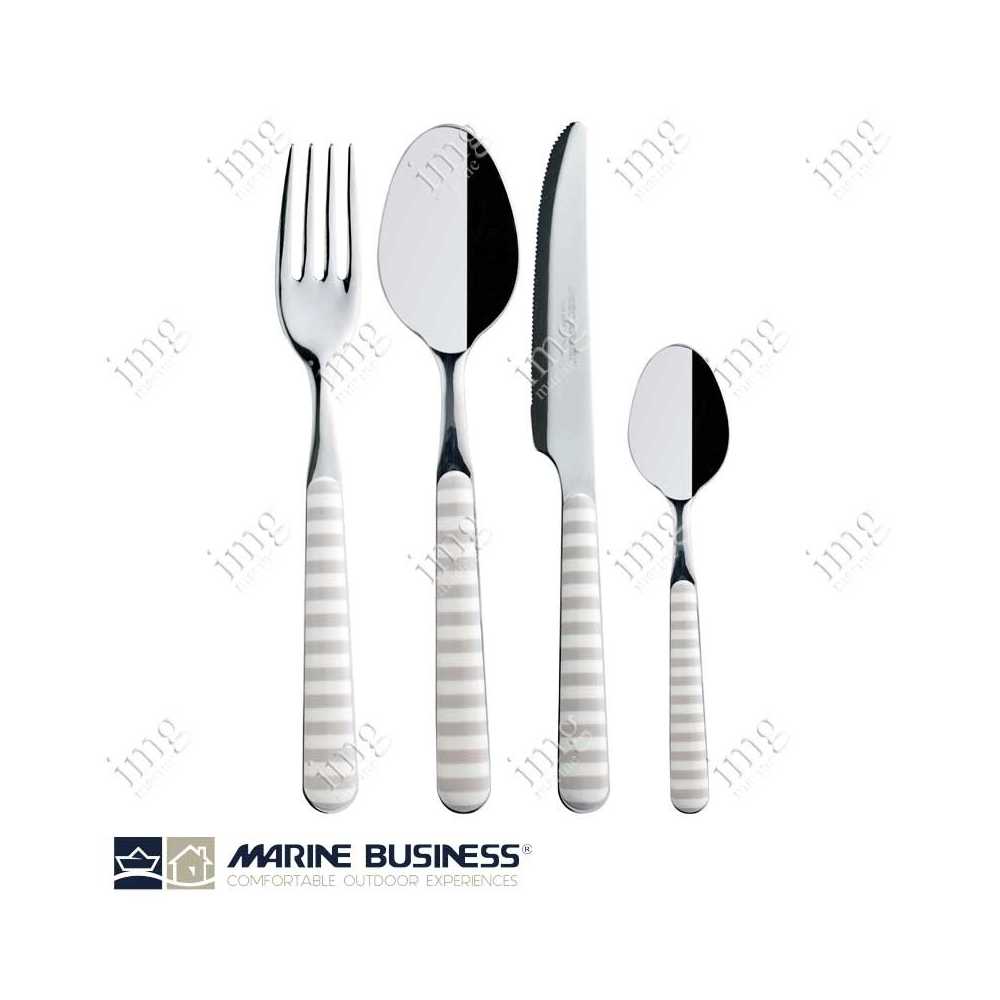 Posate in acciaio inox 18/10 con manico in ABS a righe Bianche e Beige di Marine Business. Set da 24 pezzi
