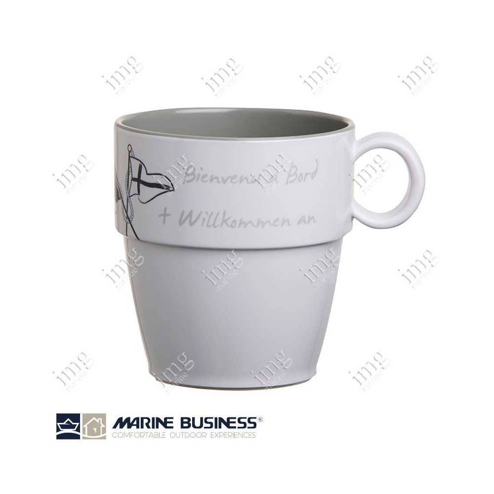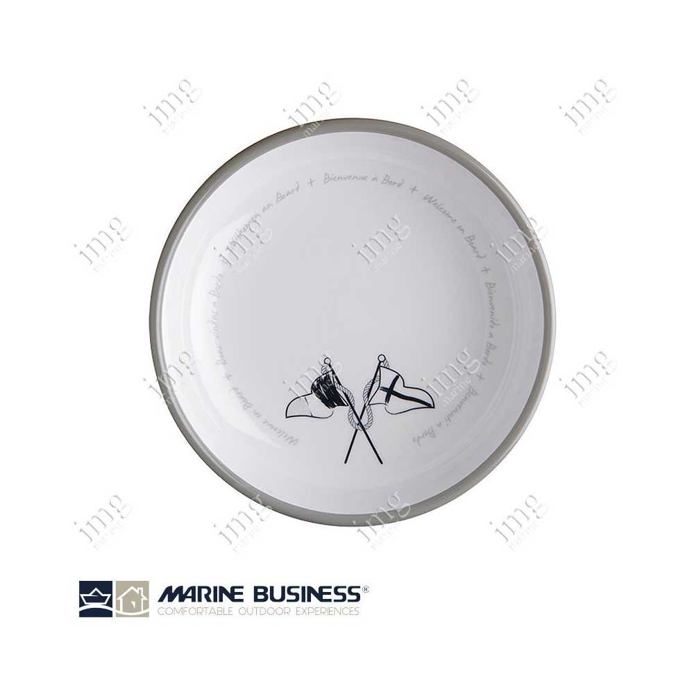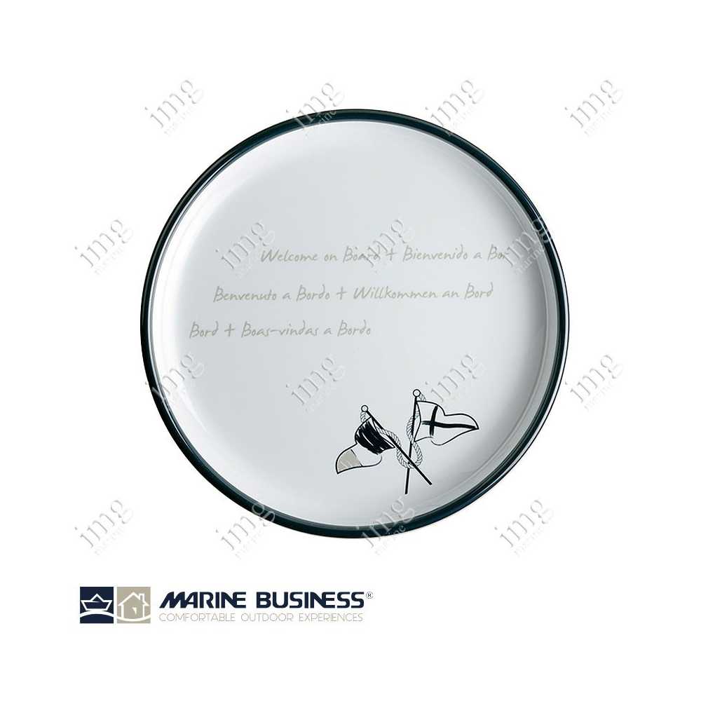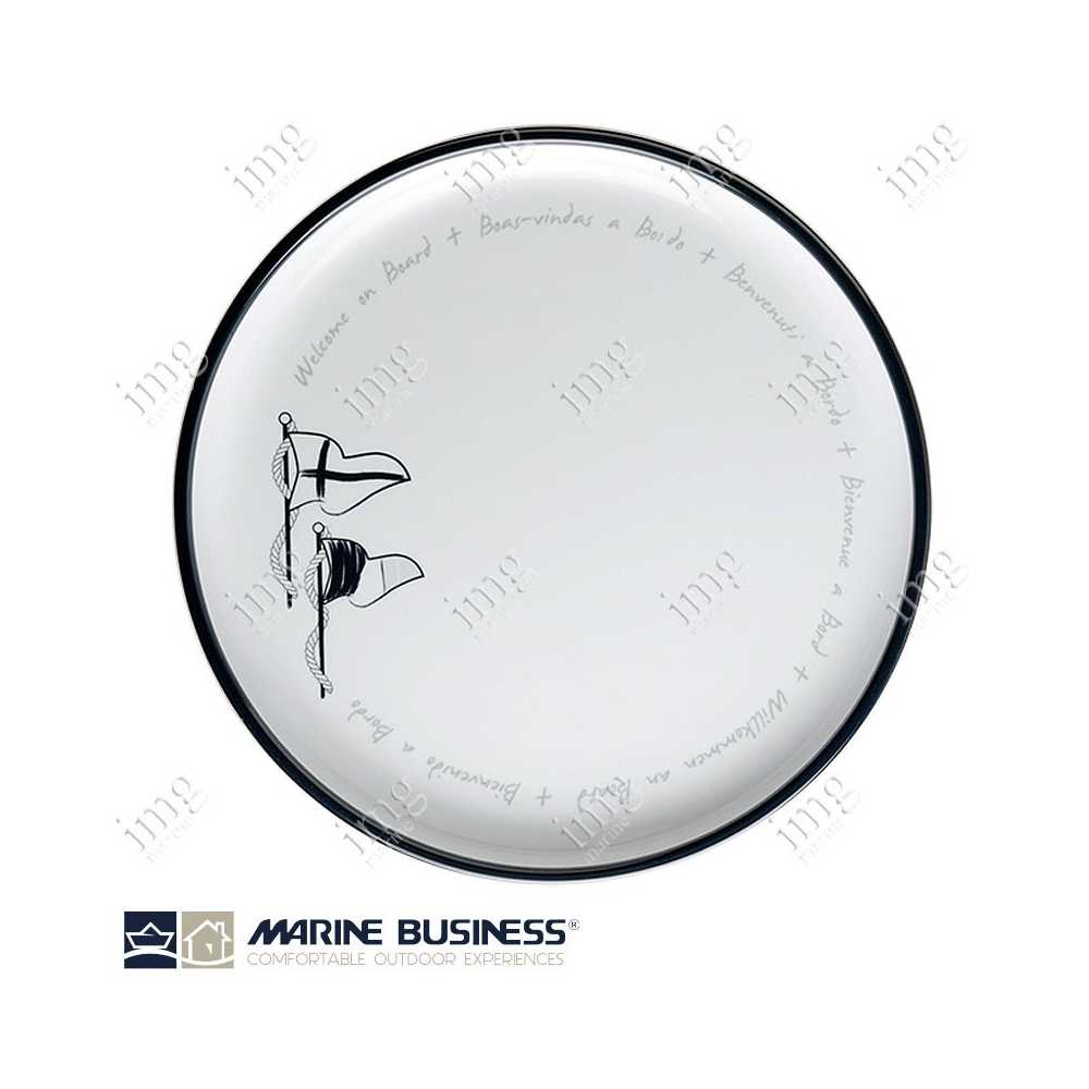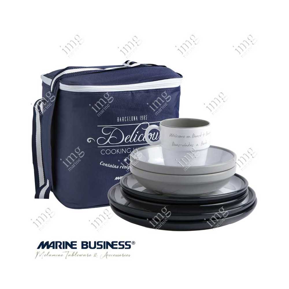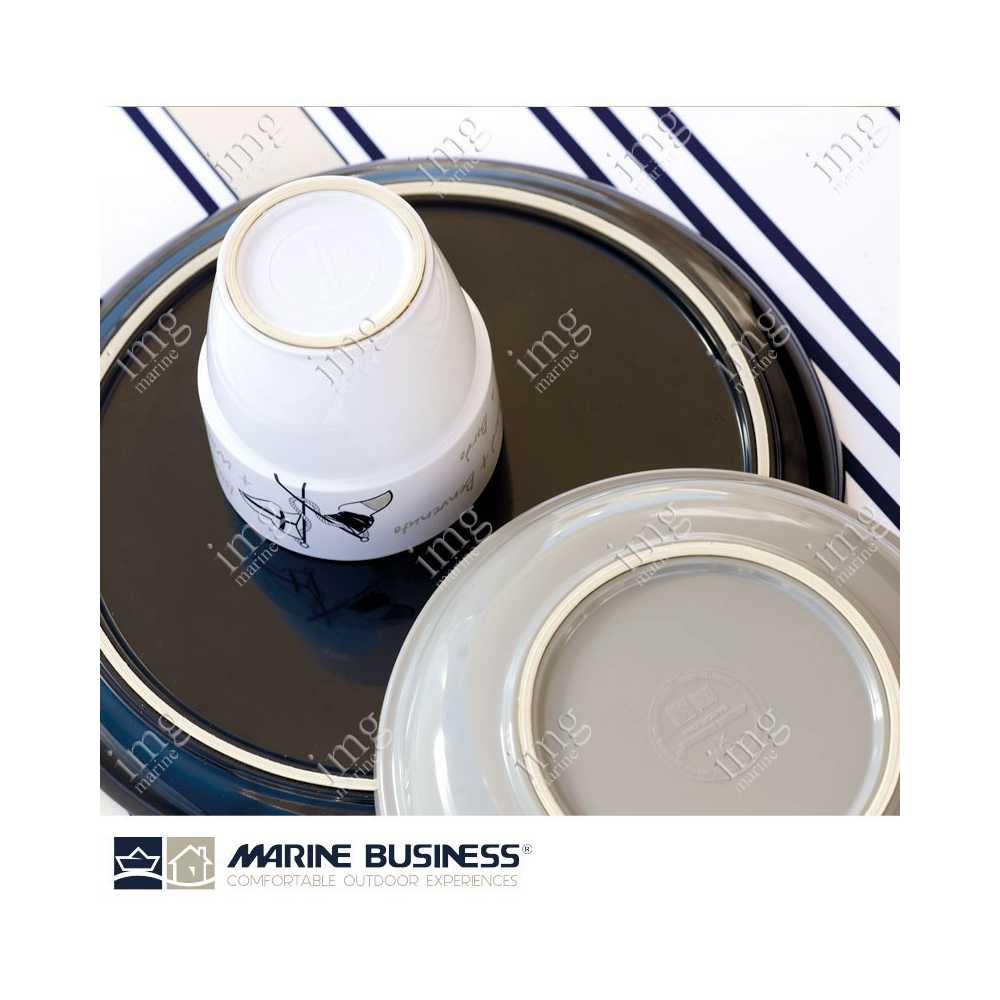 Servizio stoviglie da 17 pezzi serie Welcome on Board di Marine Business, in melamina di alta qualità, infrangibili, con antiscivolo. Per 4 persone.