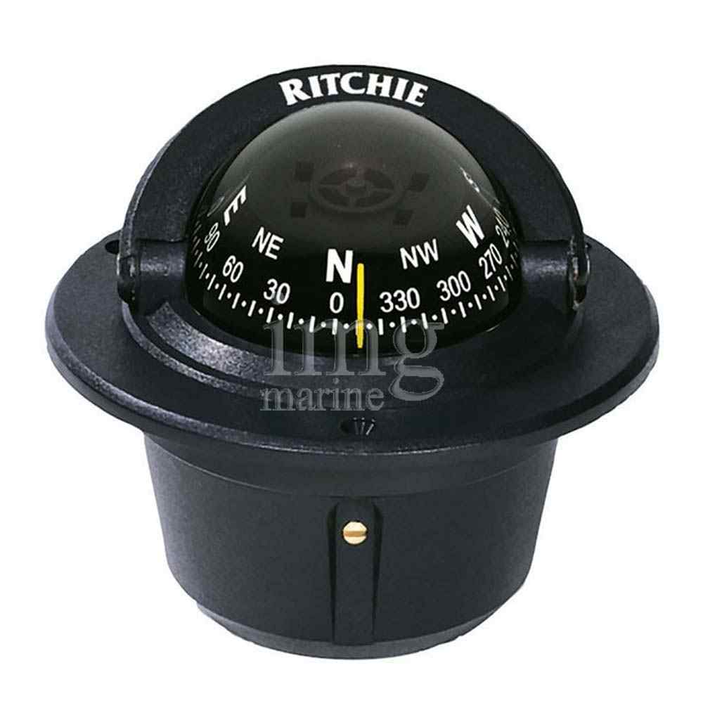 Bussola Ritchie Explorer F50 a incasso, foro 3¾" (9,53 cm), con illuminazione 12V e cupola antiriflesso. Disponibile in nero