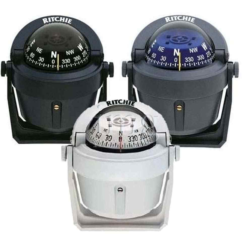 Bussola originale RITCHIE dotata di staffa con pomelli regolabili, completa di illuminazione a 12V e cupoletta regolabile antiriflesso, disponibile in 3 colori