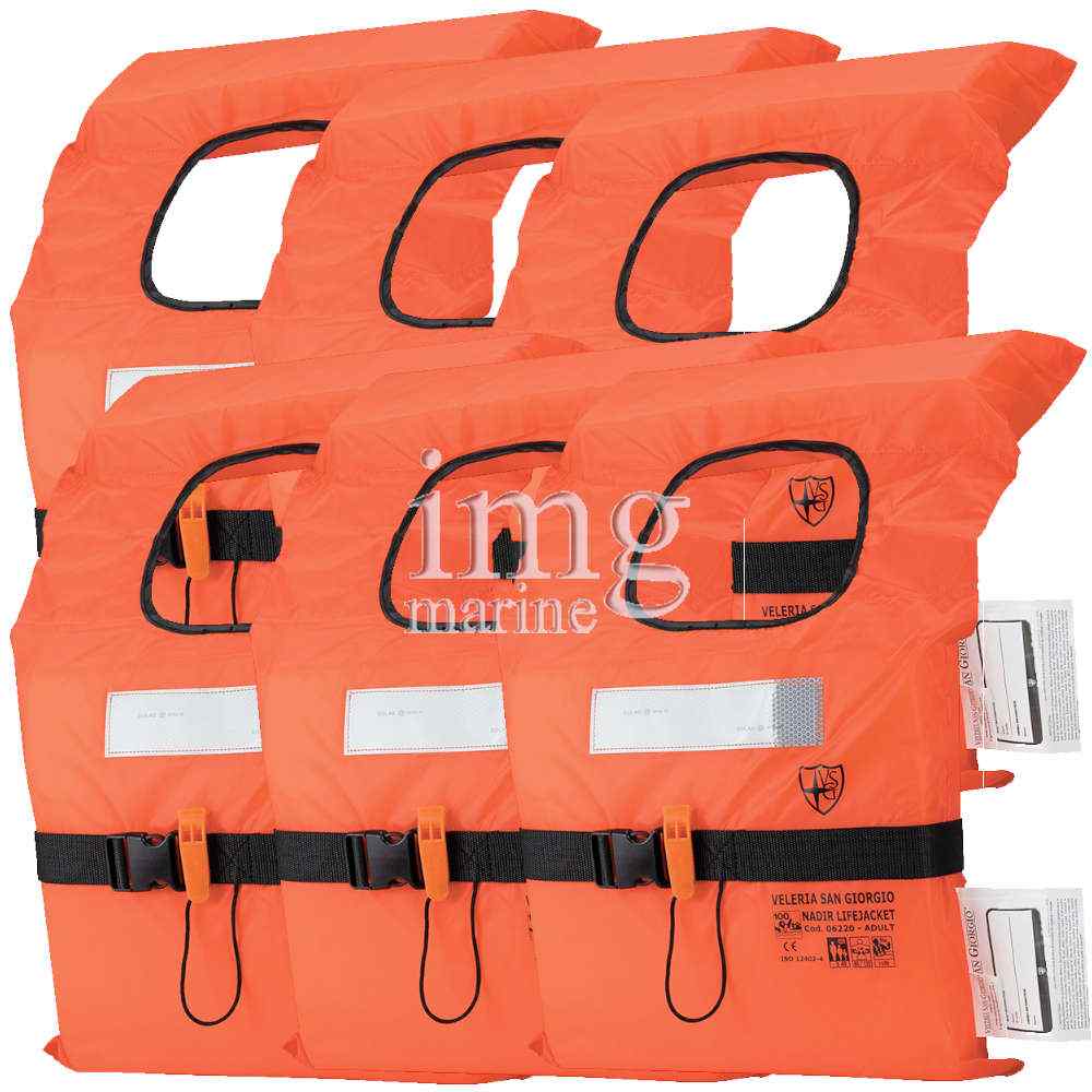 6 Giubbotti di salvataggio compatti 100N salvagente per adulti. Ingombro di stivaggio ridotto del 25%. Regolamentare per diporto e navigazione costiera entro le 6 miglia dalla costa. UNI EN ISO 12402-4.