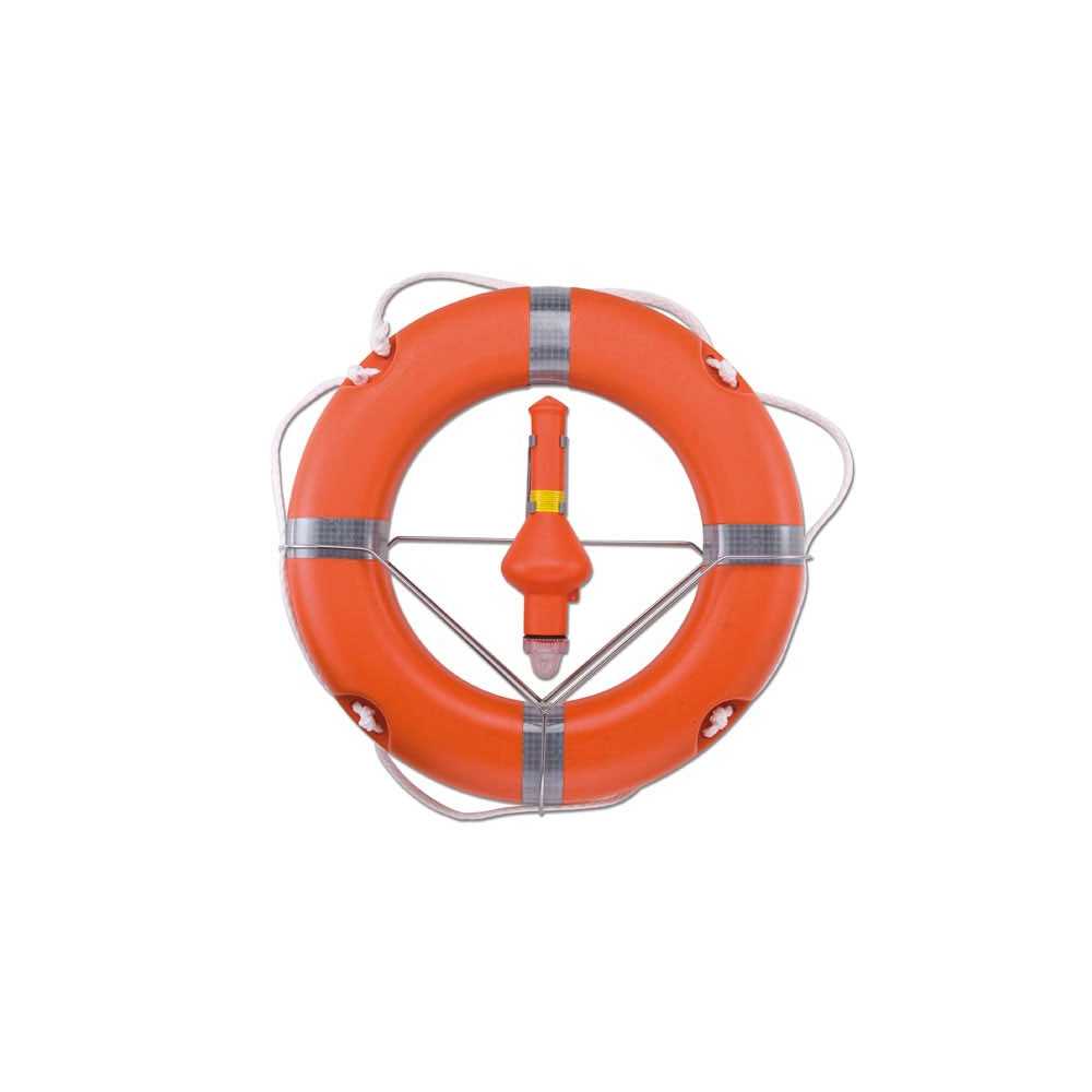 Supporto in Acciaio Inox AISI 316 per salvagente anulare e cima, con clips per boetta.