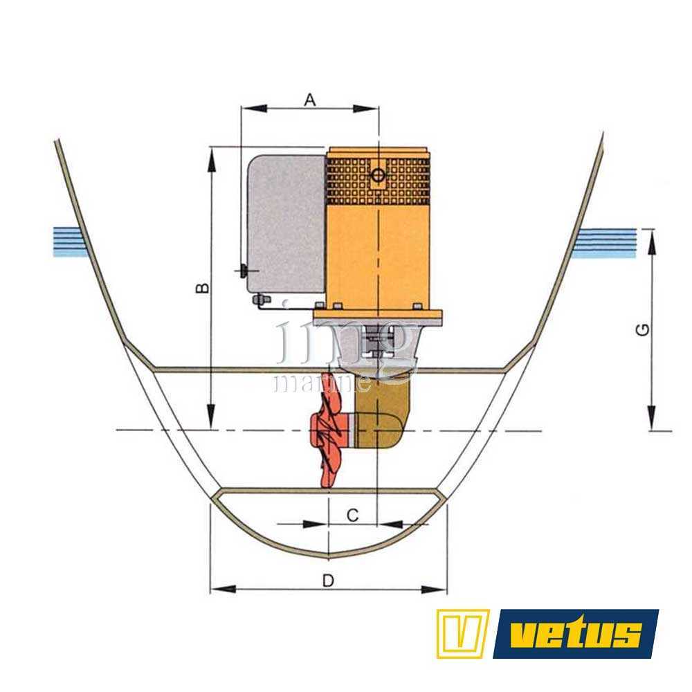 Elica di prua Bow Thruster VETUS con forza di spinta di 60 kgf, per tunnel da 185 mm adatta per imbarcazioni da 9 a 13 metri di lunghezza. Alimentazione a 12 Volt CC.