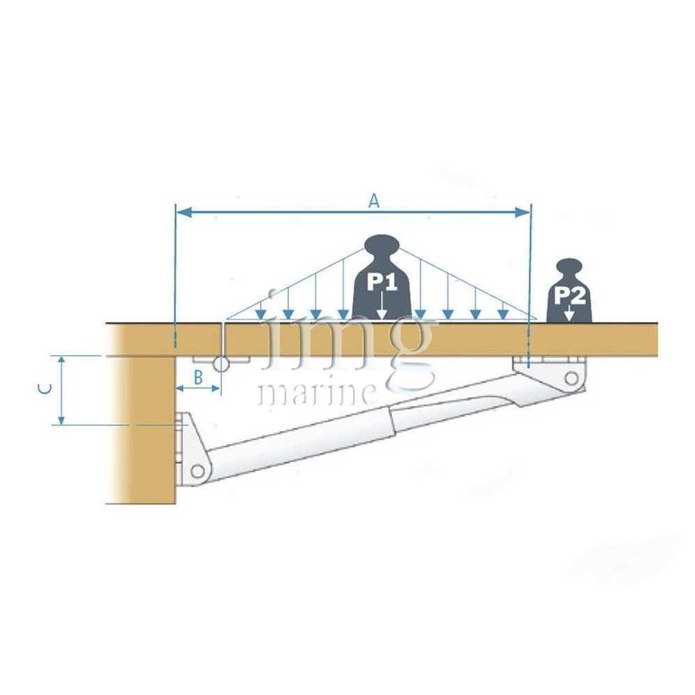 | Codice | Mensola A mm | Mensola B mm | Carico P1 Kg | Carico P2 Kg |