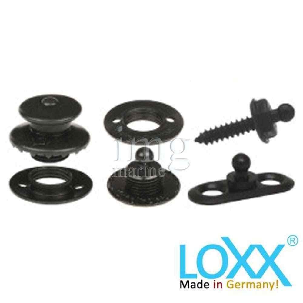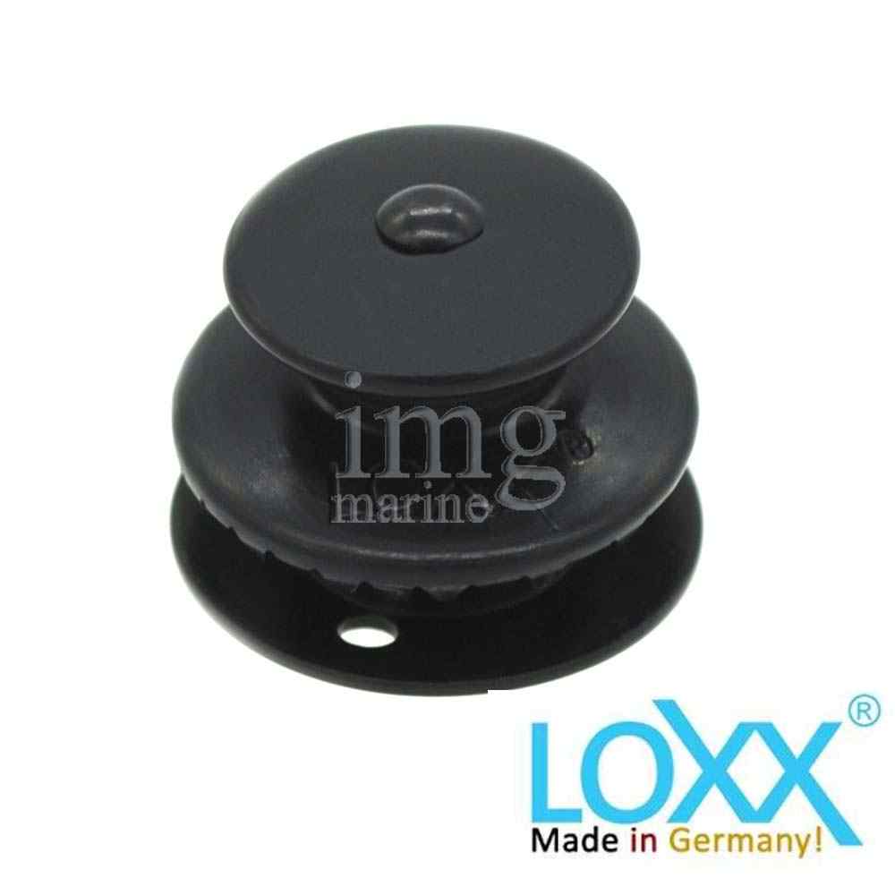 Chiusura rapida LOXX® in finitura nero opaco, sistema autobloccante Made in Germany. Ideale per coperture, tende marine e tessuti tecnici
