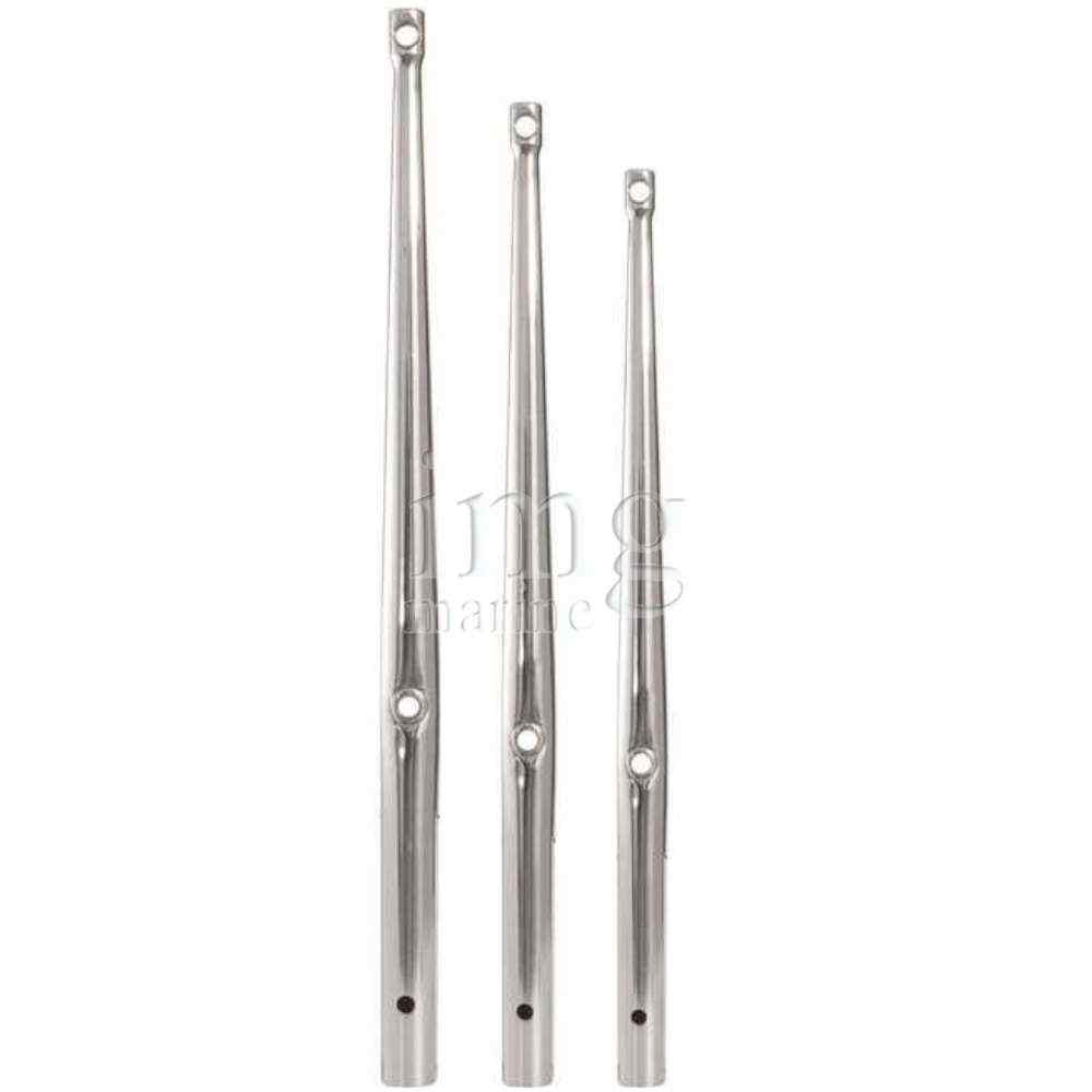 Candelieri in acciaio inox lucidati a specchio, Ø mm 25, testina cilindrica. Con foro centrale con tubetto in acciaio inox per draglie e battagliole. Disponibili in tre modelli.
