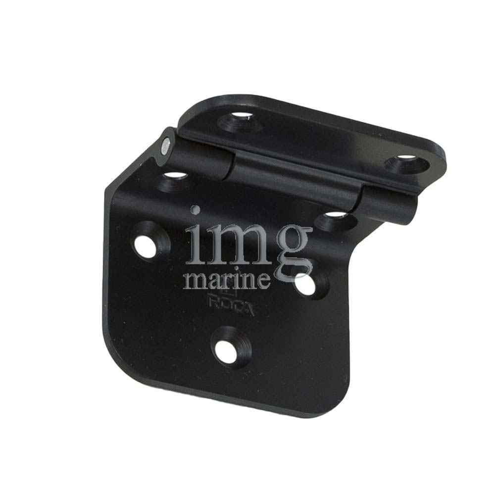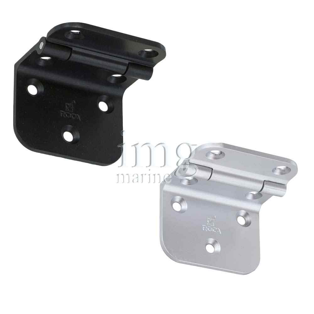 Cerniera in alluminio anodizzato satinato o nero per mensole abbattibili e piani tavolo. Resistente alla corrosione, robusta e facile da installare. Dimensioni 60 x 55 mm. Colore Nero, Satinato