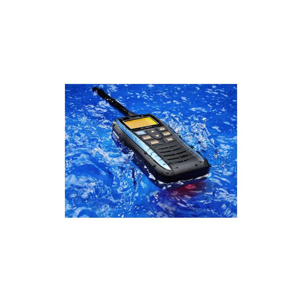 VHF portatile con display LCD, 6W RF, batteria Li-Ion, impermeabile IPX8 . Con AquaQuake, dual Watch, VOX. Completo di accessori.