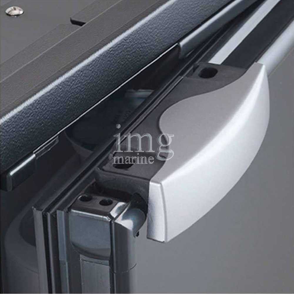 Lo sportello ha la chiusura "Airlock" in grado di prevenire aperture accidentali in navigazione ed il pratico sistema "Vent position" per mantenere lo sportello aperto nei periodi di non utilizzo per prevenire muffe e cattivi odori all'interno.