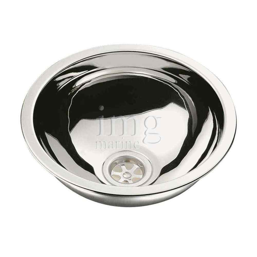 Lavello sferico in acciaio Inox lucido, disponibile in diverse misure. Foro di uscita Ø 50 mm.