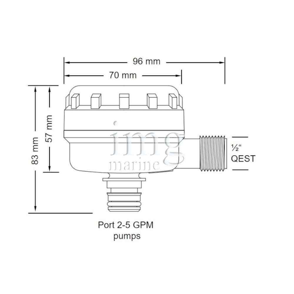 Filtro di protezione Pumpgard per pompe Par-Max e sistemi idraulici Jabsco con innesto diretto sulla pompa e retina filtrante 40 mesh in acciaio inossidabile. Con uscita 90° 1/2" filettato.