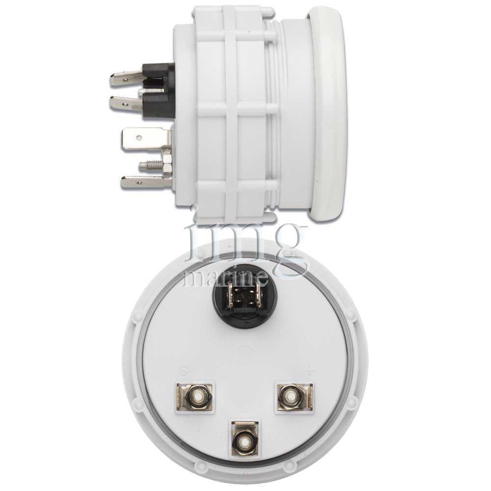 Voltmetro per tenere sotto osservazione la tensione della batteria, serie Gauge Line 12V. Colori Bianco e Nero. Dimensione Ø 57 (esterno) Ø 52 (interno)
