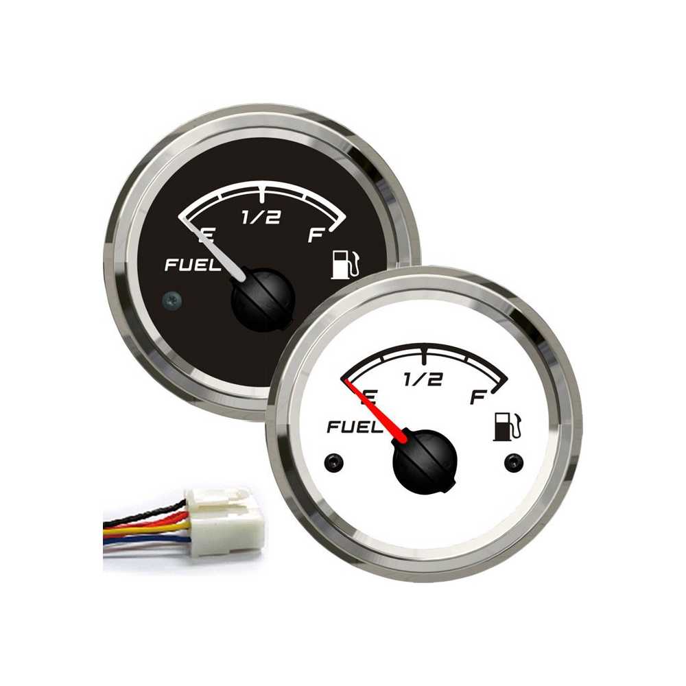 Strumento indicatore livello serbatoio carburante, funzionante a 12/24V, 10-180 Ohm. Stagno IP67. Modello XLine. Colore Bianco o nero. Ø incasso 52 mm.