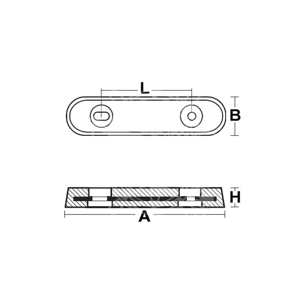 Anodo barra ovale in zinco, disponibile in diverse lunghezze.