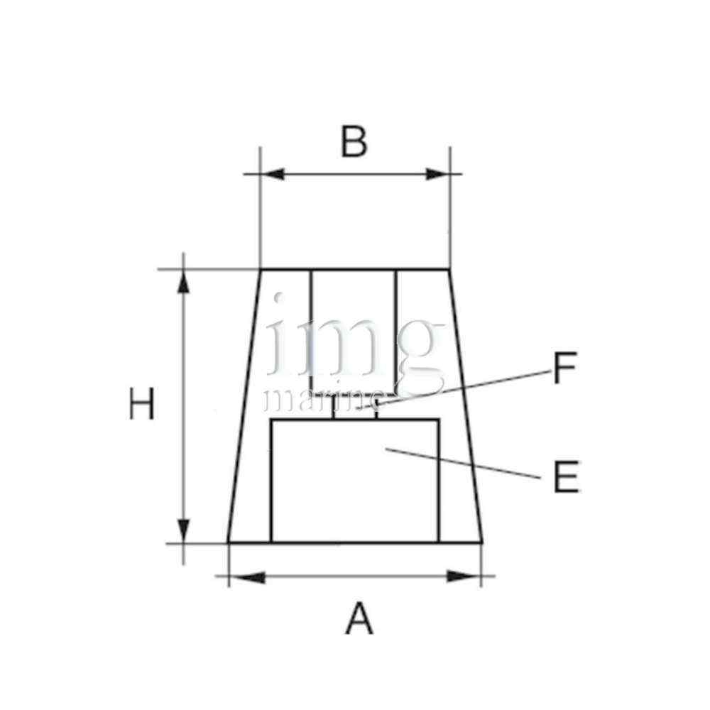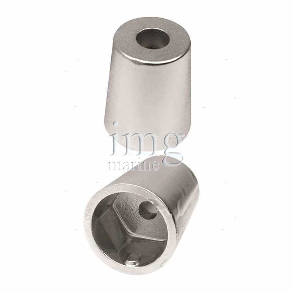 Anodo a ogiva con innesto conico esagonale per assi portaelica, in zinco disponibile in varie misure.