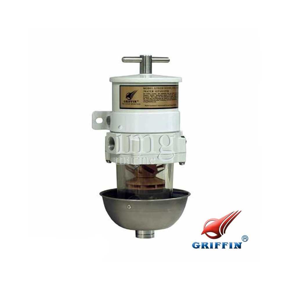 Filtro Gasolio Griffin Marine GTB341S4MA separatore acqua/gasolio ad alte prestazioni. Tecnologia MICROBLOC per una filtrazione precisa. Cartuccia filtrante compatibile Racor MA. Fornito di serie con e scudo di protezione e cartuccia da 30 micron, flusso carburante 341 L/h