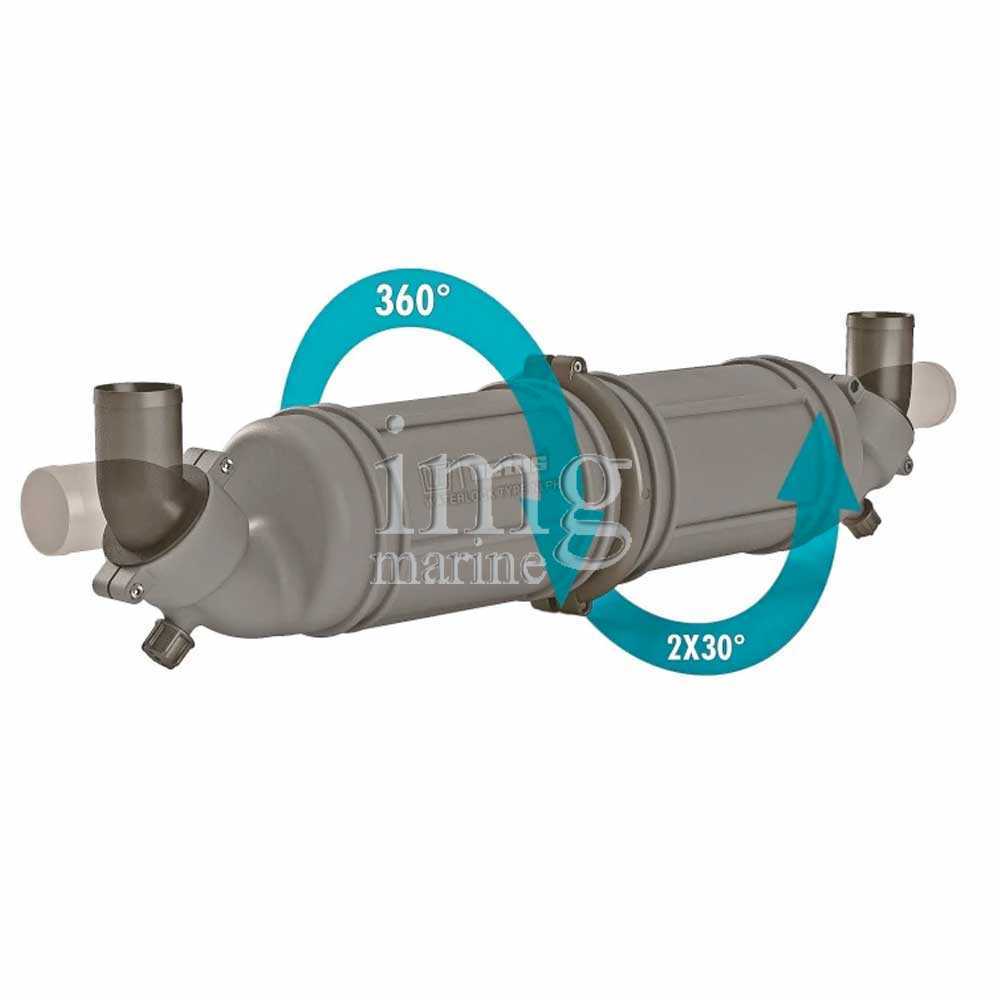 Installazione orizzontale con corpi e raccordi rotanti 360° per motori diesel entrobordo.
