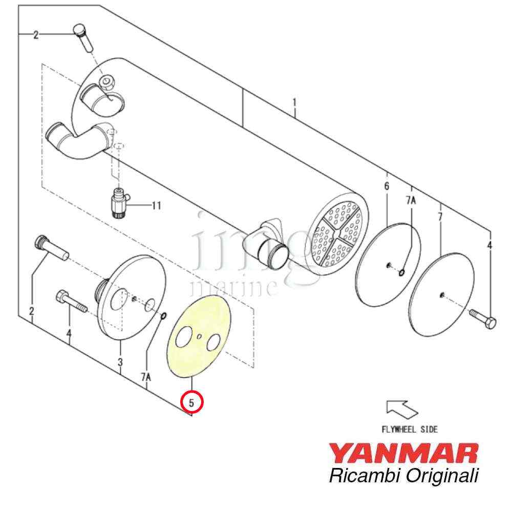 Guarnizione per scambiatore acqua 119773-44071 Yanmar. Per motori: LPA-STP2 6LPA-STZP2 6LPA-STP3