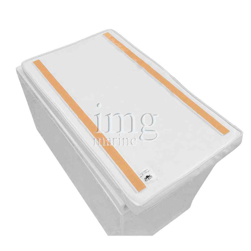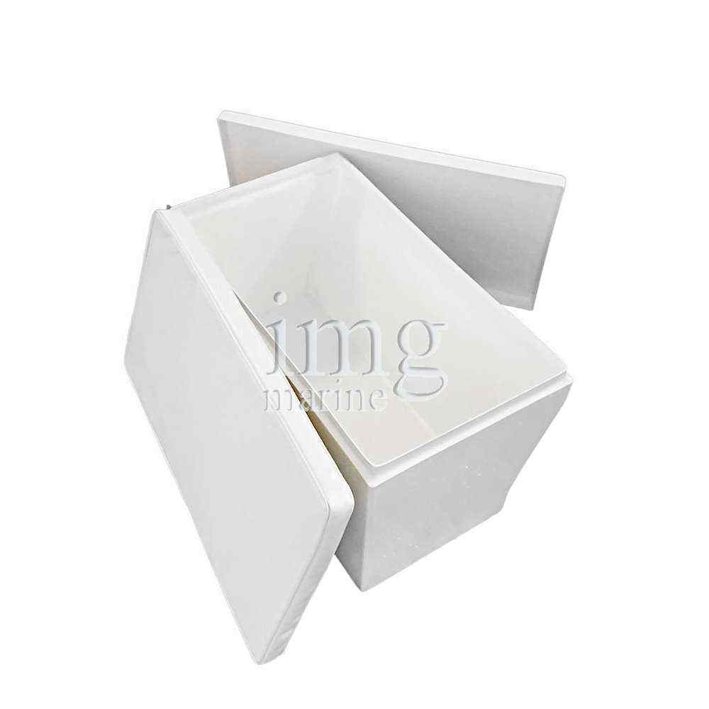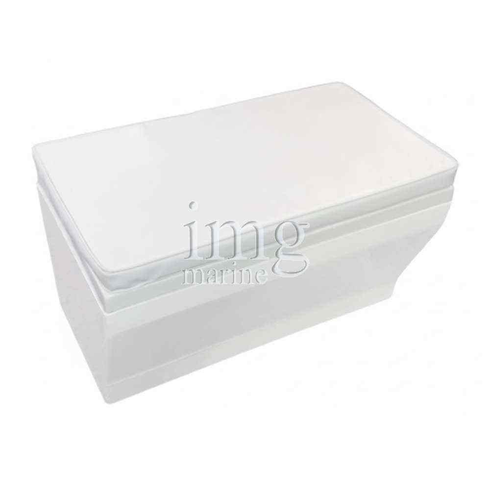 Cassapanca in vetroresina completa di cuscino in semilpelle bianca. Sedile robusto e ben rifinito, per tender e battelli pneumatici. Misura: 72x40x38 cm