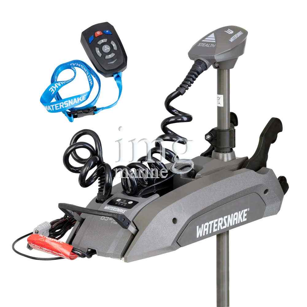 Motore elettrico di prua, fuoribordo Watersnake Stealth con telecomando wireless con spinta da 54lb lunghezza del gambo da 122 cm (48"). Tensione di alimentazione: 12V